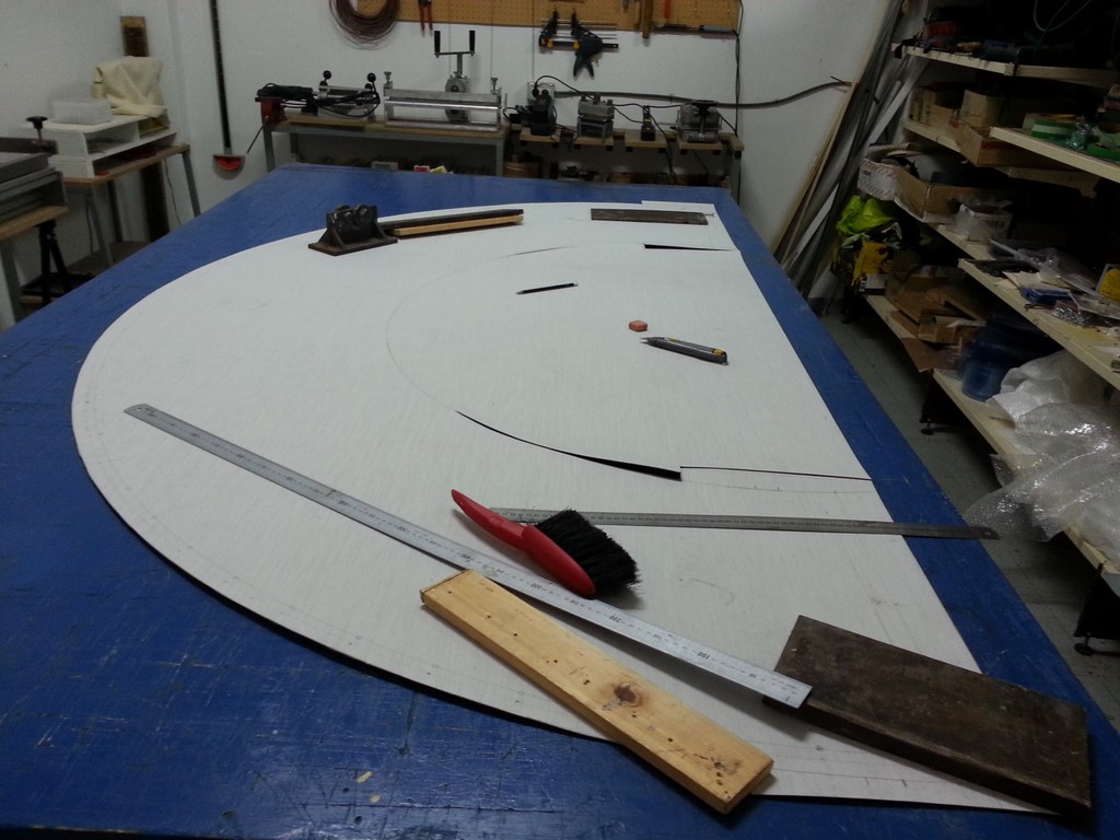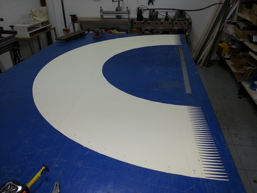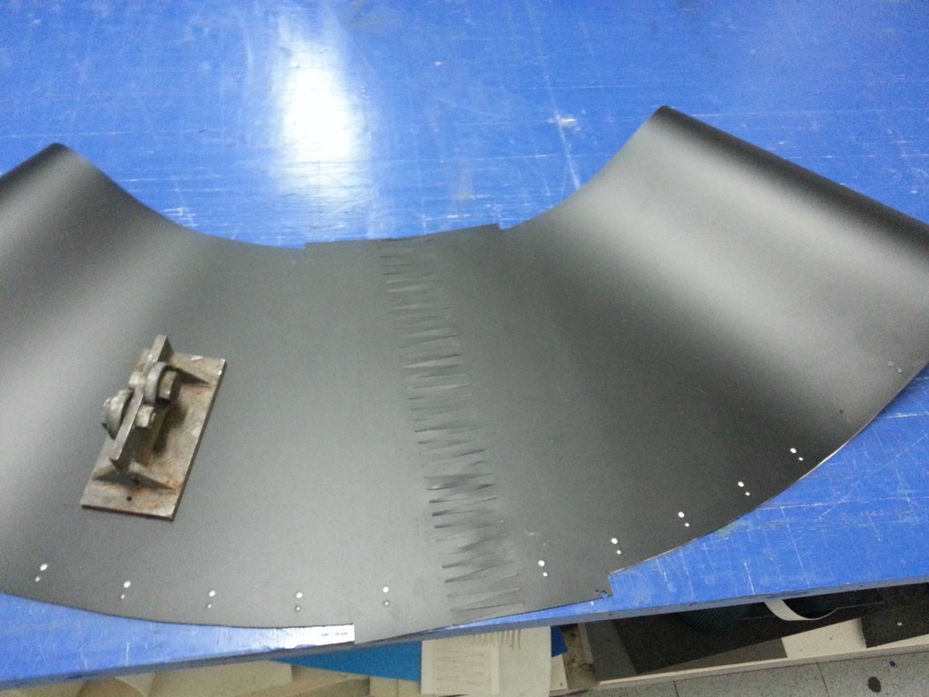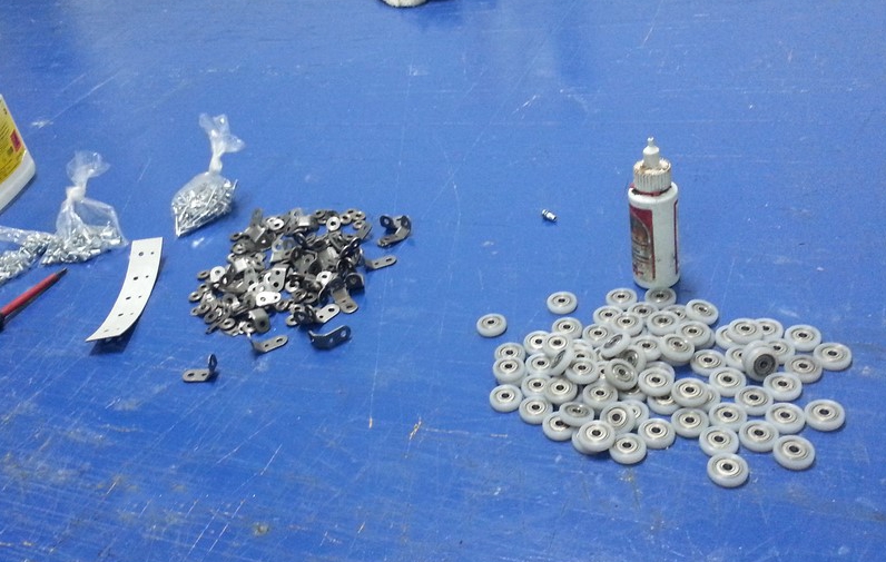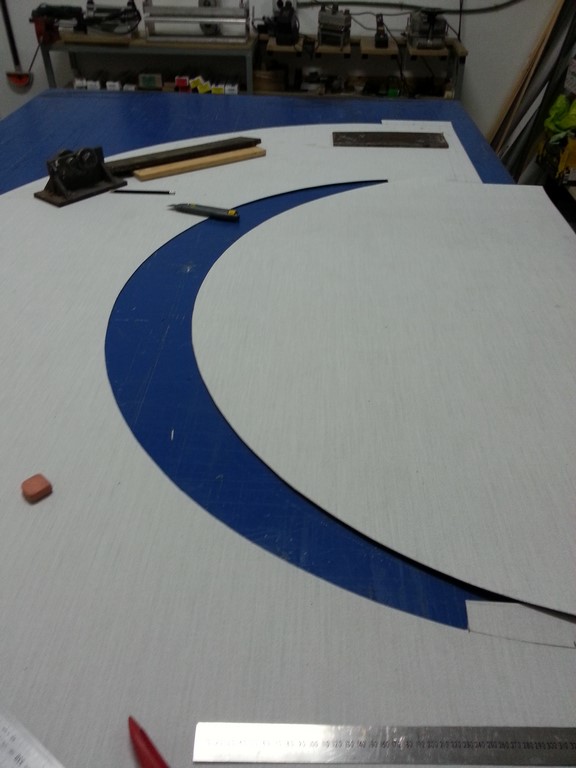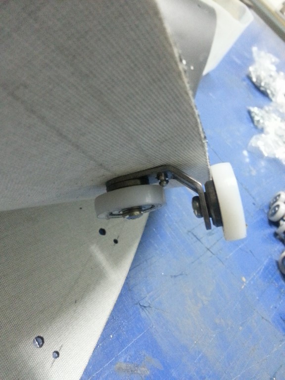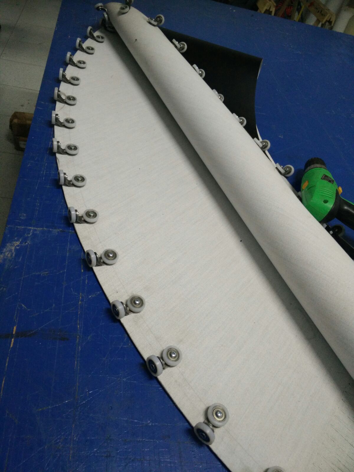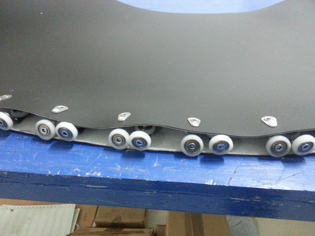 Fabricación local en nuestro taller de banda de pvc para curva 90° de transportador de periódicos con sistema de guiado de ruedas de ejes ortogonales.